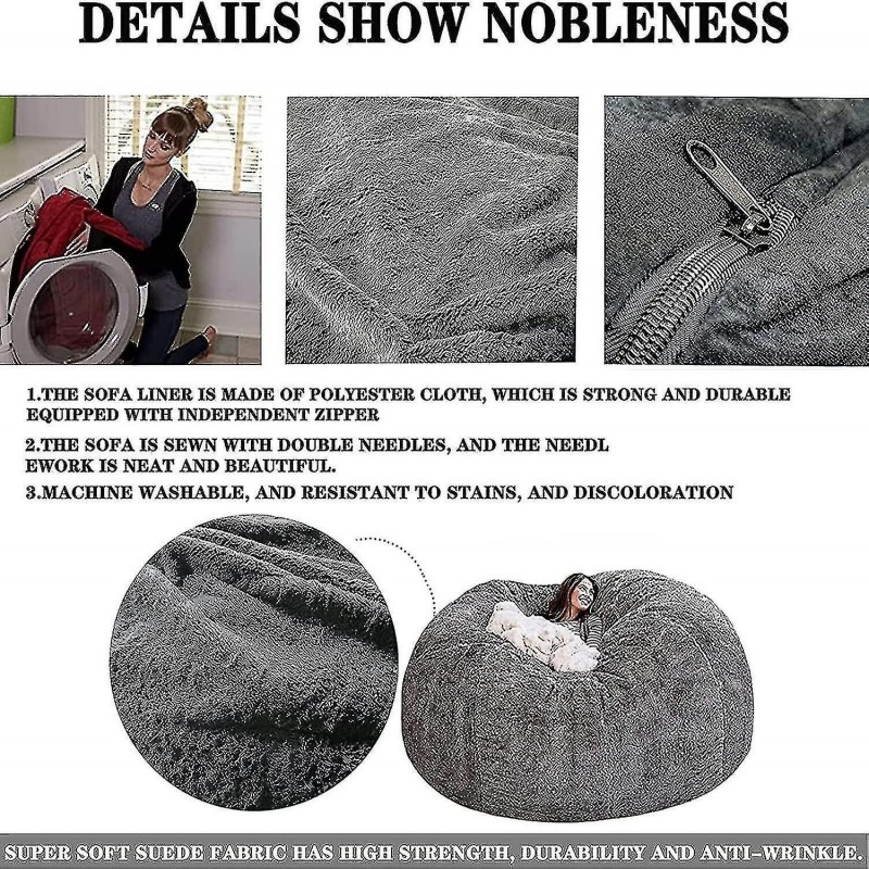 Husele noastre pentru fotolii bean bag sunt extrem de durabile și moi. Am actualizat materialul cu un material mai gros și mai luxos, conceput pentru a rezista testului timpului. (Neumplute) - Dimensiuni: 135 x 65 cm, 150 x 75 cm. (Neumplute) - Fabricate din micro-catifea îmbunătățită, mai groasă și mai moale, oferind o senzație ultra-moale și mătăsoasă. Ușor de îndepărtat și de spălat, rezistente la uzură și pete și concepute pentru a rezista testului timpului. (Neumplute) - Înlocuiți-vă canapeaua actuală cu acest fotoliu bean bag ultra-confortabil, care aduce un plus modern spațiului dvs. de locuit. Oferim o gamă largă de fotolii bean bag luxoase pentru a se potrivi perfect spațiului dvs. de locuit. (Neumplute) - De la fotolii bean bag mici la fotolii bean bag gigantice și înalte, aceste fotolii bean bag luxoase sunt adaosul perfect pentru orice subsol, cameră de zi, dormitor sau cameră de oaspeți, fie că sunt folosite ca loc de studiu confortabil sau scaun de gaming. Fotolii bean bag pentru adulți, adolescenți și copii.