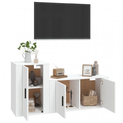 Culoare: Alb ? Material: Lemn Pachetul de livrare include: 1 x Dulap TV: 80 x 34,5 x 40 cm (L x l x Î) 1 x Dulap TV: 40 x 34,5 x 60 cm (L x l x Î)
