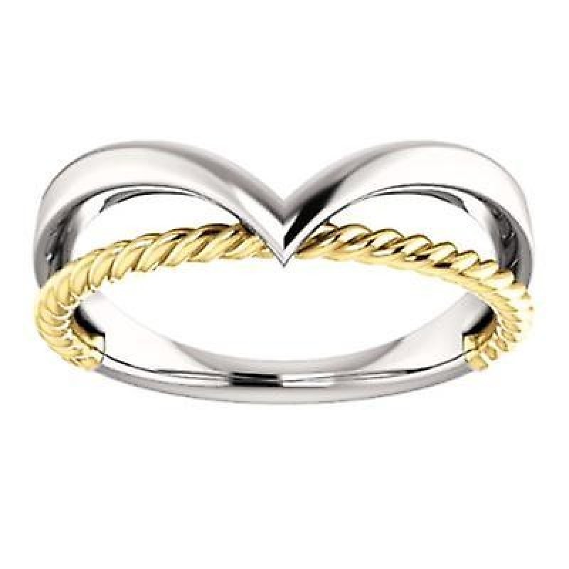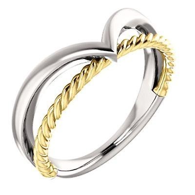 Inel din aur alb de 14k și aur galben șlefuit cu design de spațiu negativ, mărimea 6.5, cadou RON6000.0 |