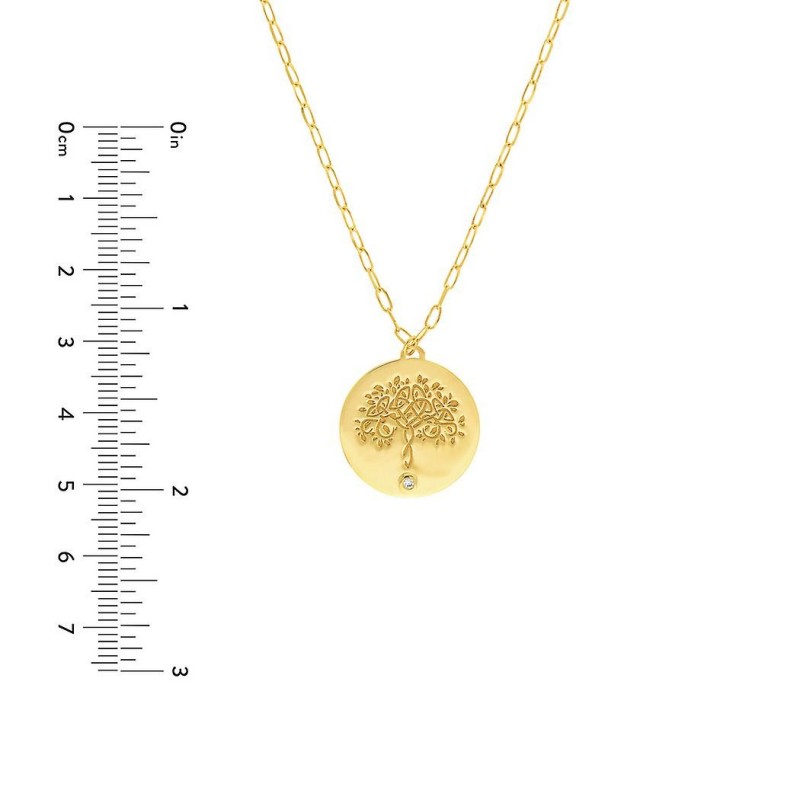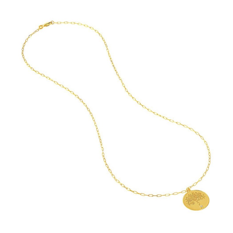 Pandantiv reglabil din aur galben de 14k cu medalion Pomul Vieții cu diamant de 0,015 carate