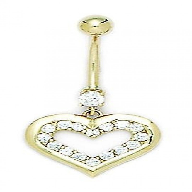 Bijuterii de corp din aur galben de 14k, cu zirconiu cubic, calibru 14, pandantiv în formă de inimă, 33 x 17 mm, aur galben de 14k, gata de oferit cadou. [Posibile accesorii: zirconiu cubic] - Materiale sintetice. Unele sunt placate cu un material care crește durabilitatea pietrei. [Îngrijire și manipulare: zirconiu cubic] - Curățați cu apă caldă cu săpun și o cârpă moale.