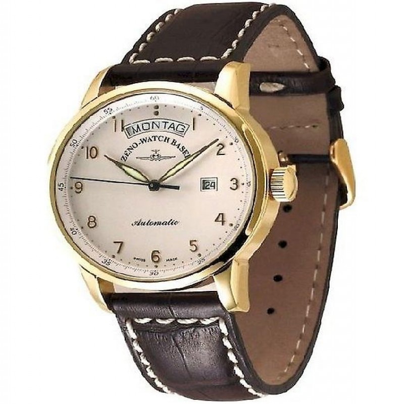Marcă: Zeno Watch Basel Grup de produse: Ceasuri Grup țintă: Bărbați Culoare carcasă: Aur galben Cristal: Safir Material curea: Piele ≤ 42 mm Material carcasă: Oțel inoxidabil Culoare cadran: Alb ≤ Altele: Capac spate ceas Altele: Fabricat în Elveția Afișaj: Analog Culoare curea: Maro Suprafață placată: Lustruită Formă carcasă: Rotundă Tip ceas: Ceasuri automate Tip mișcare: Automată Tip închizătoare: Închizătoare cu știft