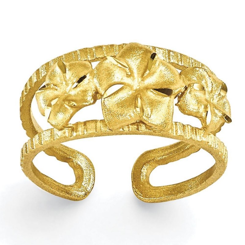 Inel de picior din aur galben de 14k cu plumeria satinată - cadou pentru femei - 1,8 g